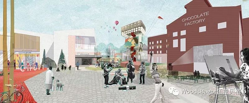 该项目核心区域是一处中央公园,周边设有其他景观布置,如一条繁花锦簇的花园走廊、一处雕塑公园、一处耕种体验园以及由现存池塘和原工业滨水区改造而成的优美水景区和湿地区。