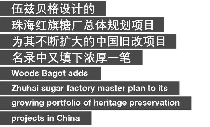 位于珠海市金湾区的一处废弃糖厂即将重获新生,成为一处集文化、旅游和休闲为一体的糖文化创意园。在伍兹贝格的总体规划中,不仅展示着珠海曾经繁盛的制糖产业所传承下来的令人引以为傲的历史遗产,同时也将通过可适性再利用为即将新建的红旗镇糖厂赋予未来新的使命。