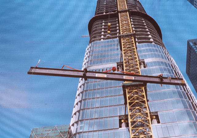 ”北京阳光保险金融中心最后一根钢梁安装到位“